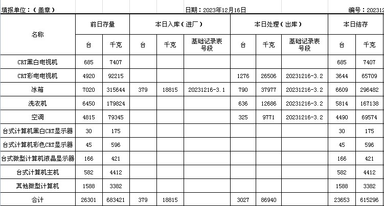 2023.12.16回收拆解統(tǒng)計(jì)表