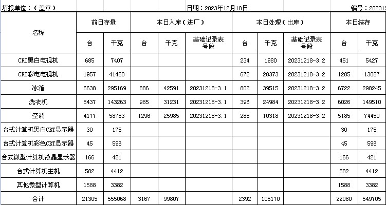 2023.12.18回收拆解統(tǒng)計表