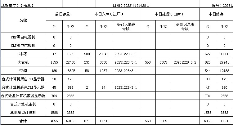 2023.12.28回收拆解統(tǒng)計(jì)表