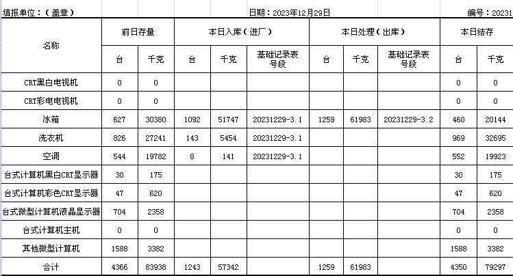 2023.12.29回收拆解統(tǒng)計(jì)表