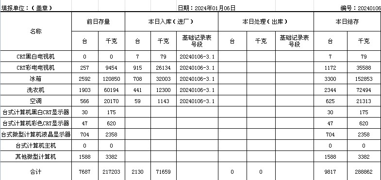 2024.01.06回收拆解統(tǒng)計(jì)表