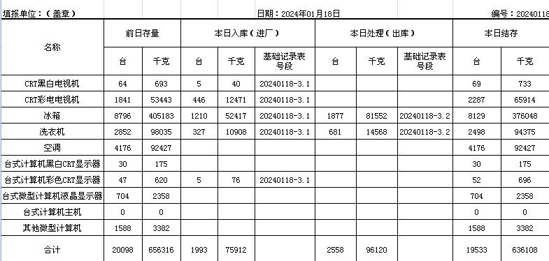2024.01.18回收拆解統(tǒng)計(jì)表