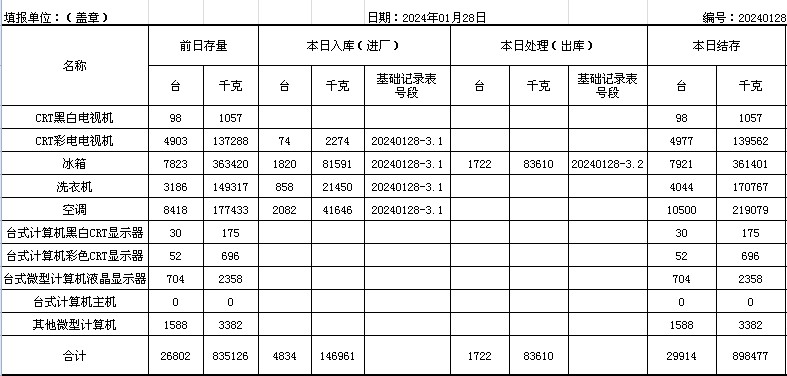 2024.01.28回收拆解統(tǒng)計(jì)表