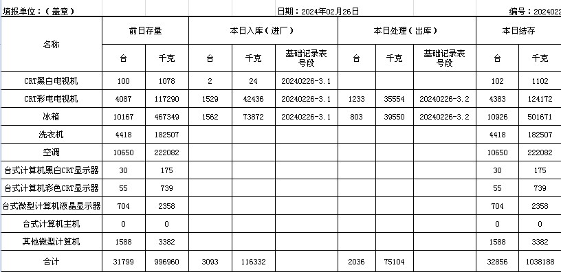 2024.02.26回收拆解統(tǒng)計表