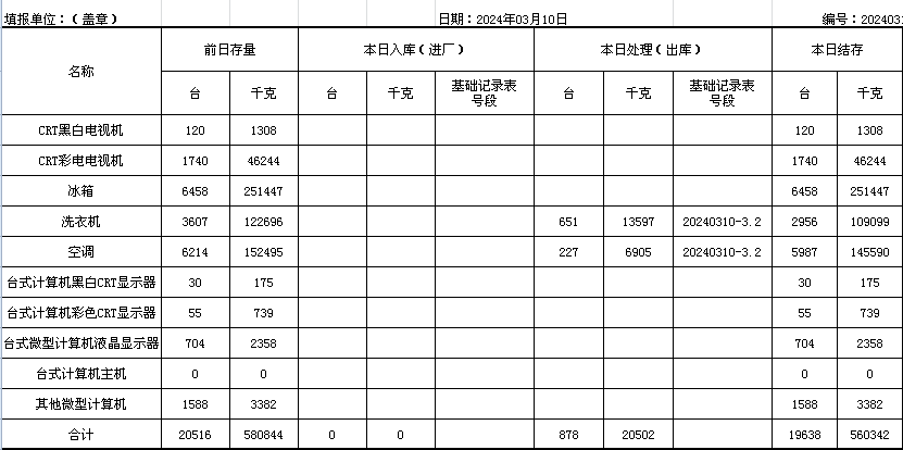 2024.03.10回收拆解統(tǒng)計(jì)表