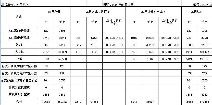 2024.03.11回收拆解統(tǒng)計(jì)表