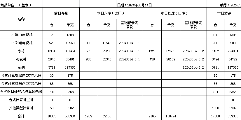 2024.03.14回收拆解統(tǒng)計(jì)表