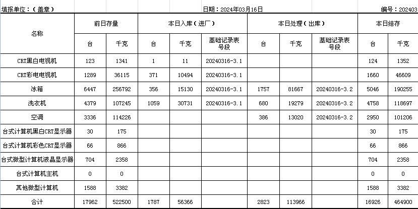 2024.03.16回收拆解統(tǒng)計(jì)表