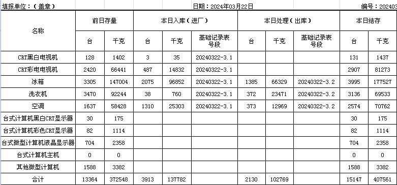 2024.03.22回收拆解統(tǒng)計(jì)表