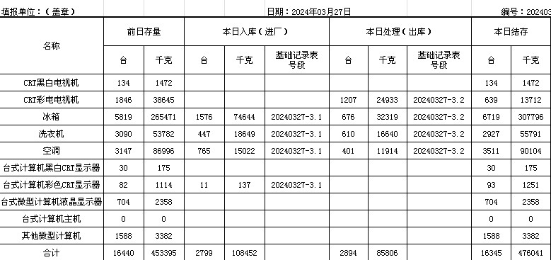 2024.03.27回收拆解統(tǒng)計表