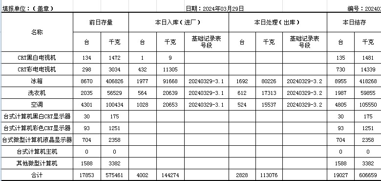 2024.03.29回收拆解統(tǒng)計(jì)表