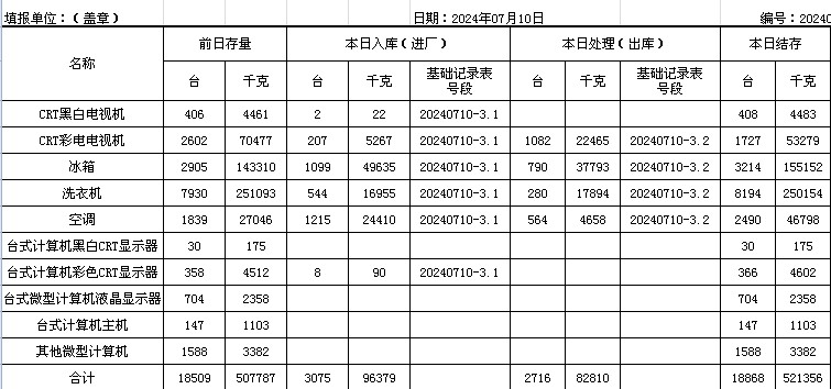 2024.07.09回收拆解統(tǒng)計(jì)表