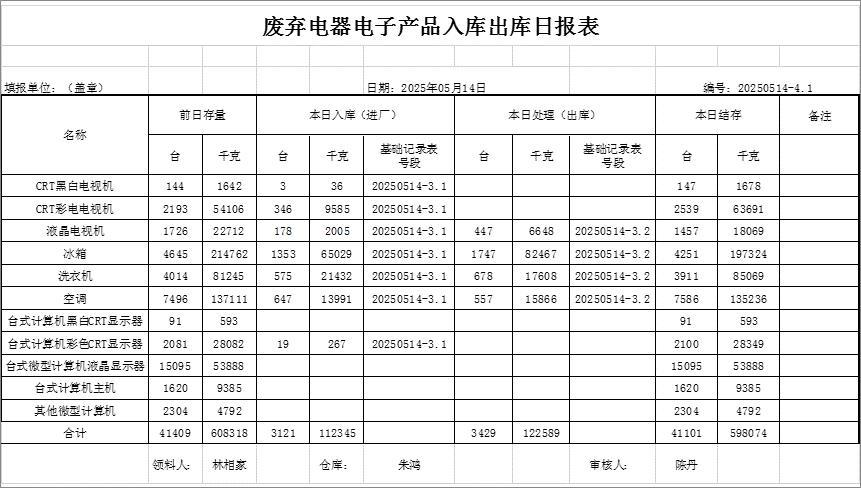 2025.05.14回收拆解統(tǒng)計(jì)表