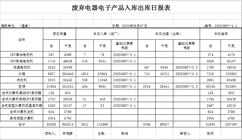 2025.08.07回收拆解統(tǒng)計(jì)表