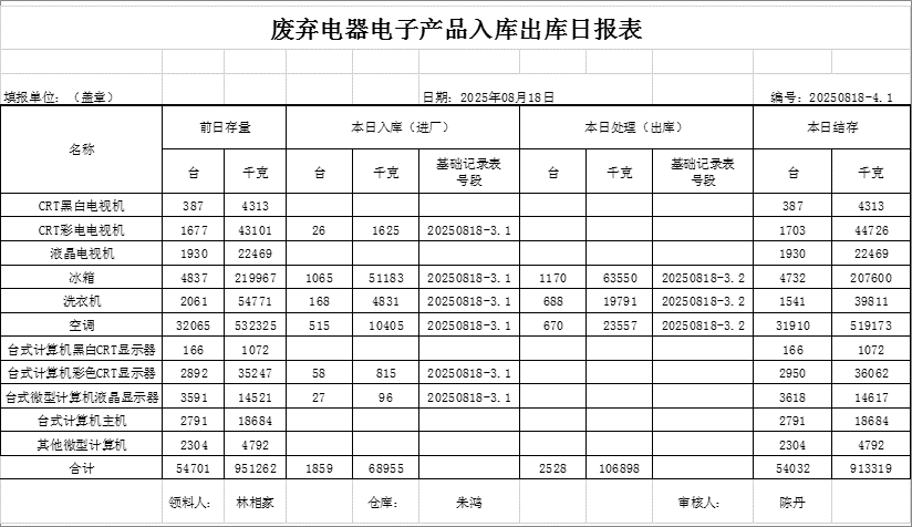 2025.08.19回收拆解統(tǒng)計(jì)表