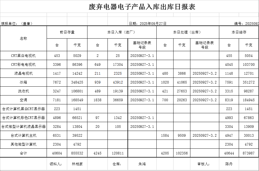2025.09.27回收拆解統(tǒng)計(jì)表