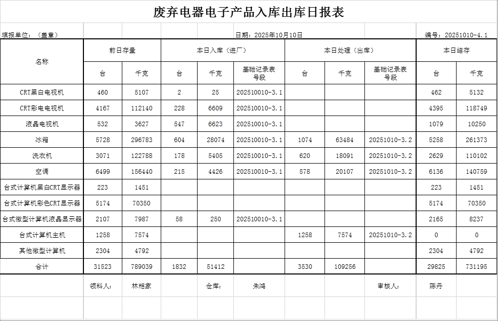 2025.10.09回收拆解統(tǒng)計(jì)表