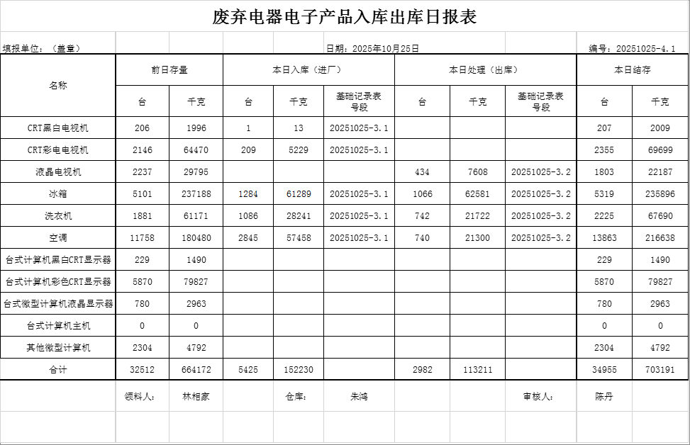 2025.10.25回收拆解統(tǒng)計(jì)表