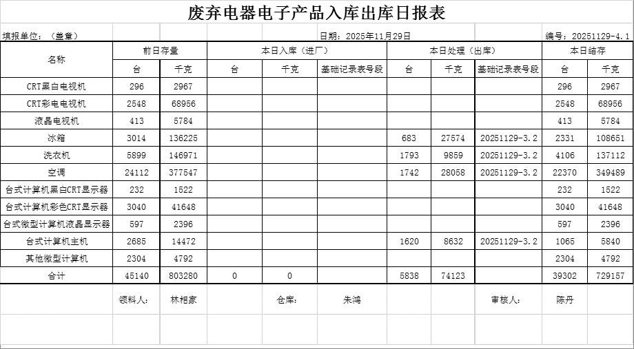 2025.11.29回收拆解統(tǒng)計(jì)表
