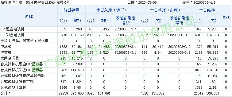 2020.05.08回收拆解統(tǒng)計(jì)表
