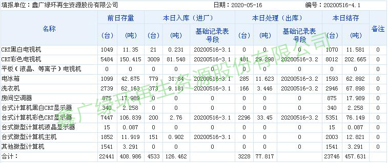2020.05.16回收拆解統(tǒng)計(jì)表