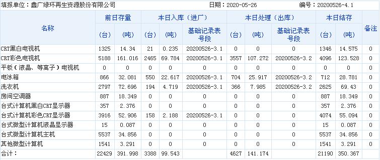 2020.05.26回收拆解統(tǒng)計(jì)表