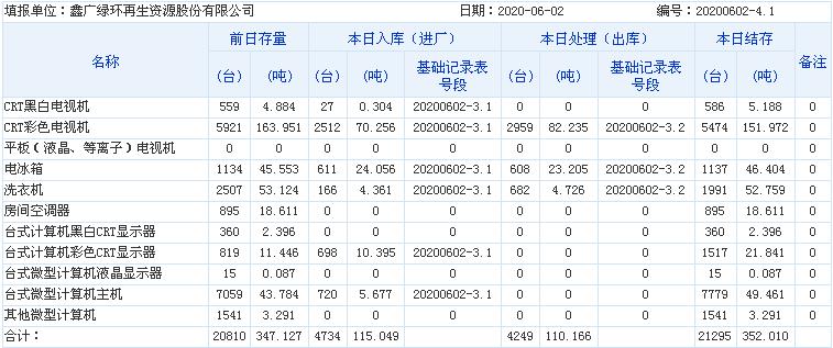 2020.06.02回收拆解統(tǒng)計(jì)表