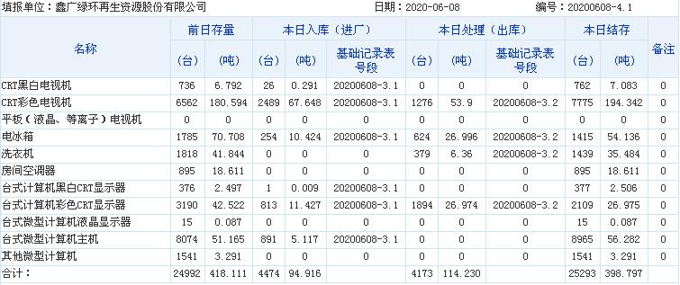 2020.06.08回收拆解統(tǒng)計(jì)表