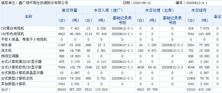 2020.06.12回收拆解統(tǒng)計(jì)表