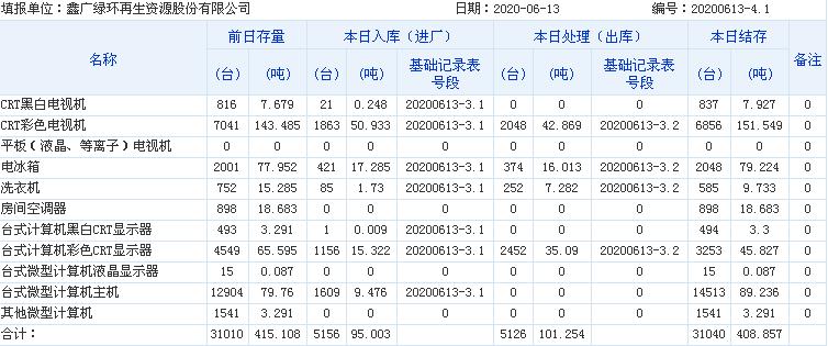 2020.06.13回收拆解統(tǒng)計表