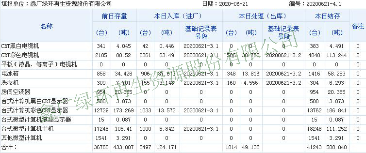 2020.06.22回收拆解統(tǒng)計(jì)表