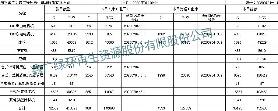 2020.07.04回收拆解統(tǒng)計(jì)表