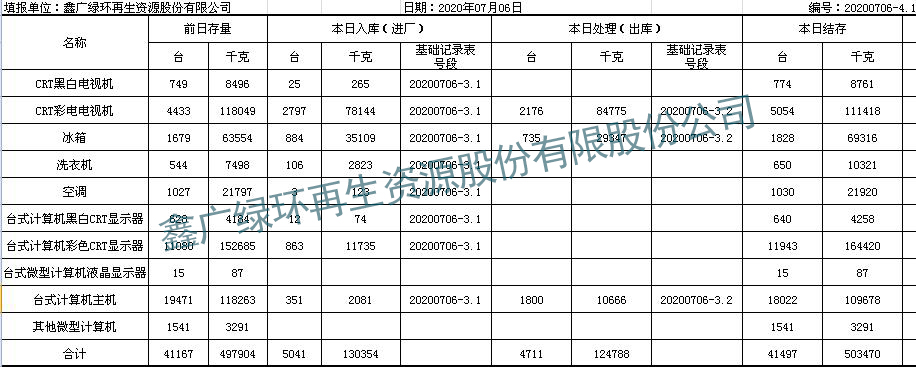 2020.07.06回收拆解統(tǒng)計(jì)表