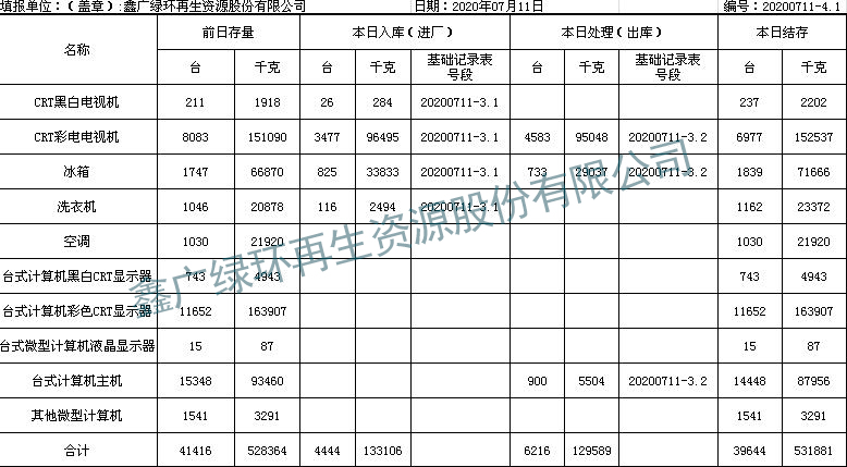 2020.07.11回收拆解統(tǒng)計表