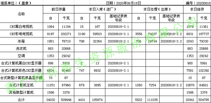 2020.08.18回收拆解統(tǒng)計(jì)表