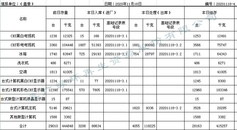 2020.11.18回收拆解統(tǒng)計(jì)表