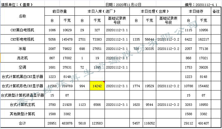 2020.11.23回收拆解統(tǒng)計(jì)表