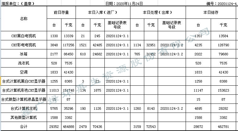 2020.11.24回收拆解統(tǒng)計表