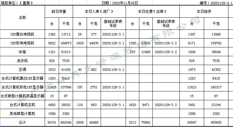 2020.11.26回收拆解統(tǒng)計(jì)表