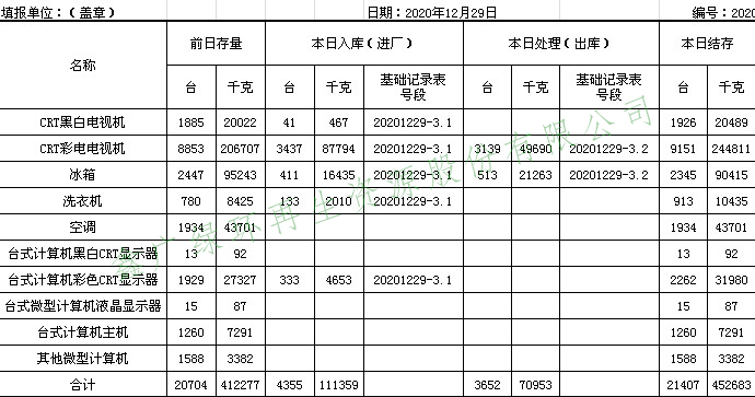 2020.12.29回收拆解統(tǒng)計表
