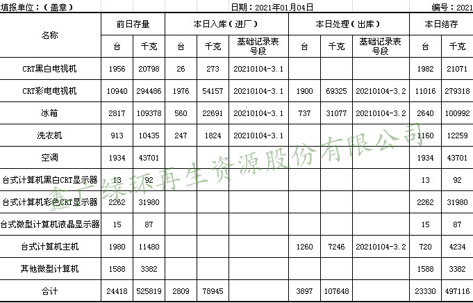 2021.01.04回收拆解統(tǒng)計表