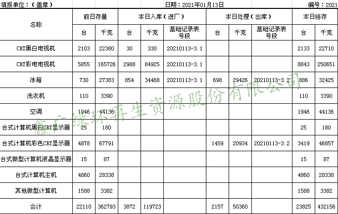 2021.01.13回收拆解統(tǒng)計(jì)表