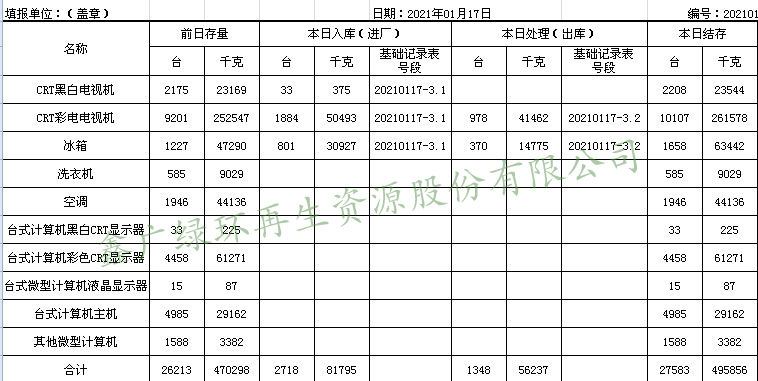 2021.01.17回收拆解統(tǒng)計(jì)表