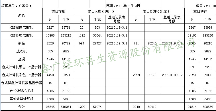 2021.01.19回收拆解統(tǒng)計表