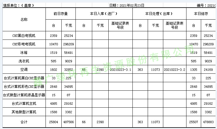2021.02.23回收拆解統(tǒng)計(jì)表