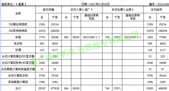 2021.03.09回收拆解統(tǒng)計表