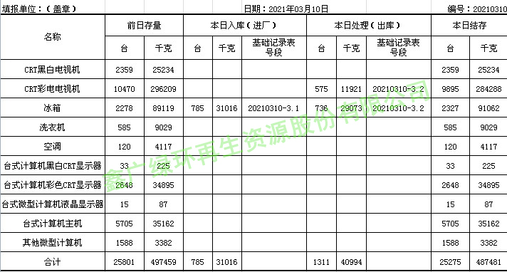2021.03.11回收拆解統(tǒng)計(jì)表