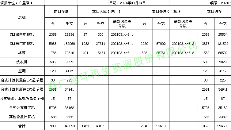2021.03.14回收拆解統(tǒng)計(jì)表