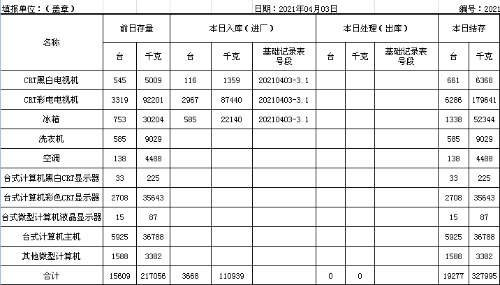 2021.04.03回收拆解統(tǒng)計表