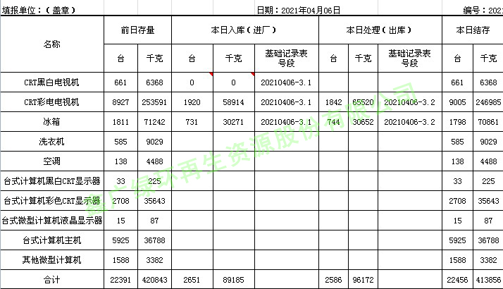 2021.04.06回收拆解統(tǒng)計(jì)表